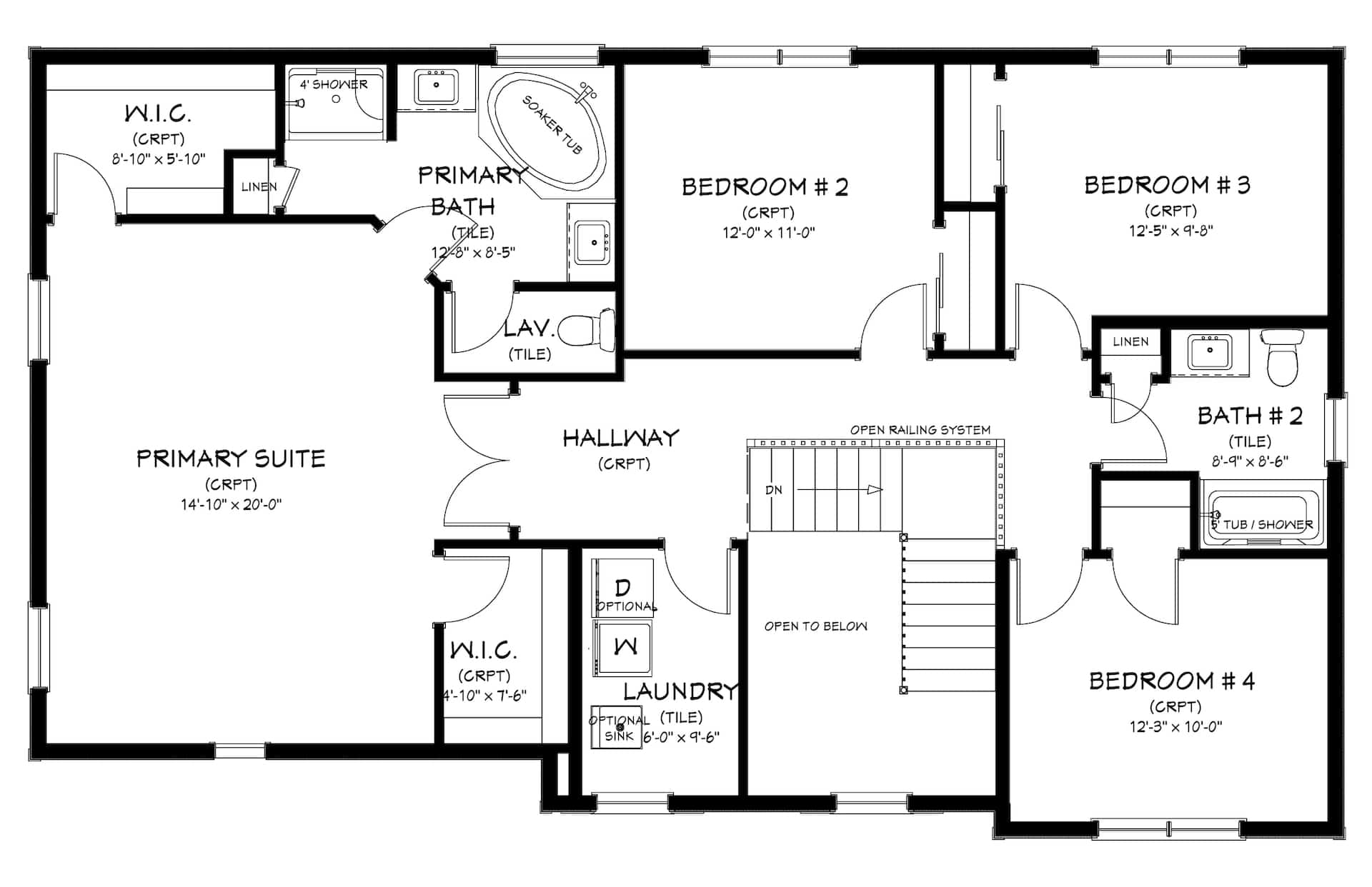 Open floor plan on first level with a well-designed Chef’s Kitchen w/ Dinette, 14’4″ X 19’ 11″ Great Room (with or without fireplace), Dining Room w/ crown molding and chair rail, and Powder Room. The Primary Suite w/en suite bath, 3 additional bedrooms, laundry room and full bath complete the second level.