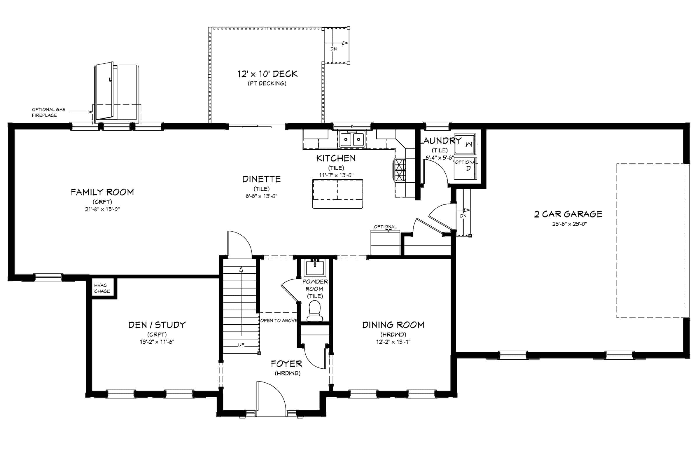 Open floor plan on first level with a well-designed Chef’s Kitchen w/ Dinette, 22’ X 15’ 10″ Great Room (with or without fireplace), Dining Room w/ crown molding and chair rail, Home Office, Powder Room and Laundry Room. The Primary Suite w/en suite bath and walk-in closet, 3 additional bedrooms and full bath complete the second level.