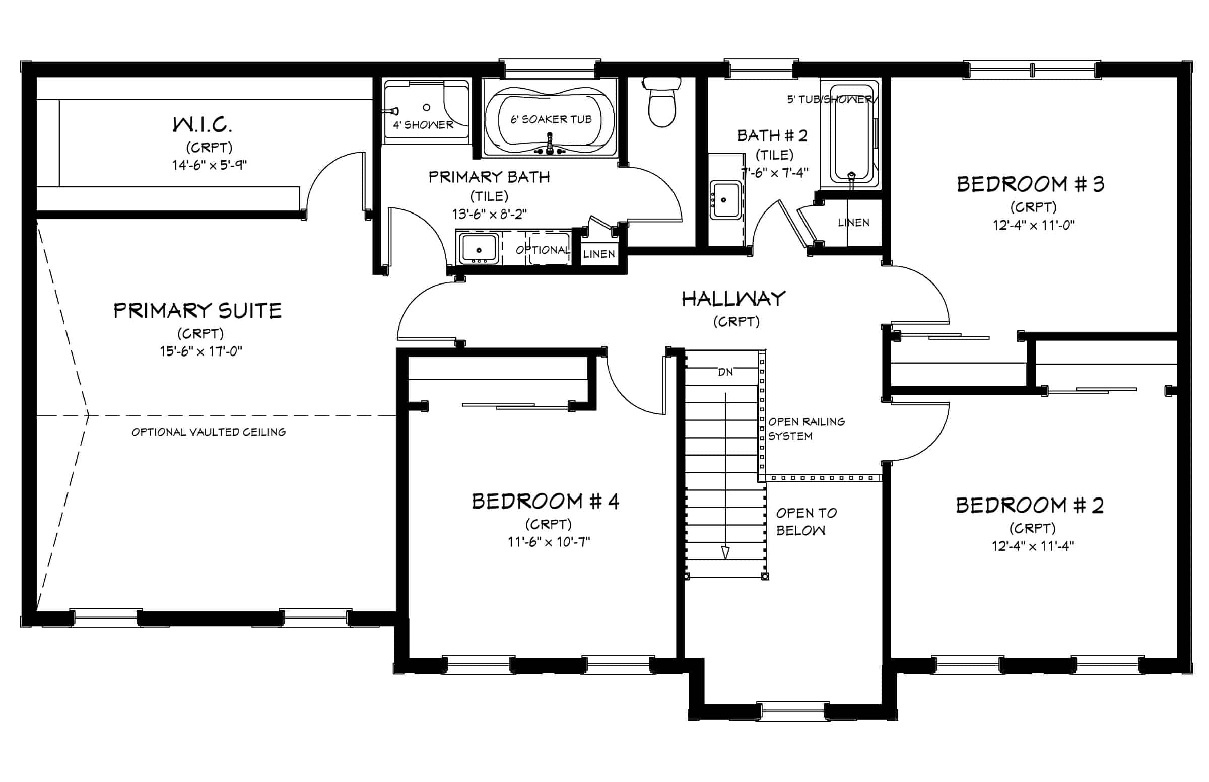 (with or without fireplace), Dining Room w/ crown molding and chair rail, Home Office, and Powder/Laundry Room. The Primary Suite w/en suite bath and large walk- in closet, 3 additional bedrooms and full bath complete the second level.